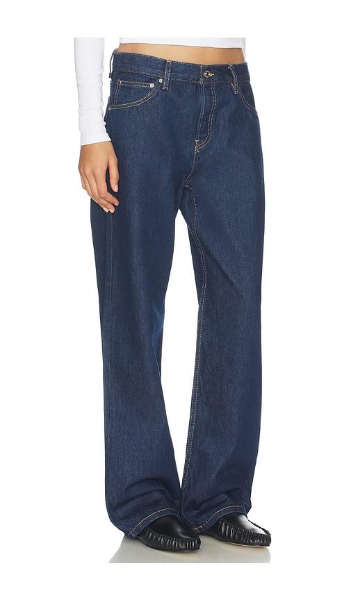 EB DENIM MID RISE BAGGY JEANS IN BLUE.