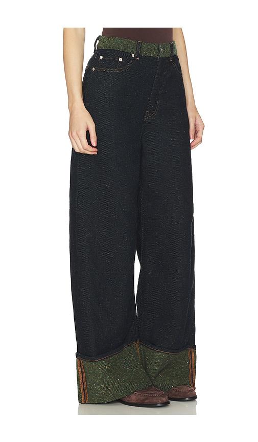 GANNI MELANGE TWILL DENIM BAGGY JEANS FOLD-UP IN BLUE.