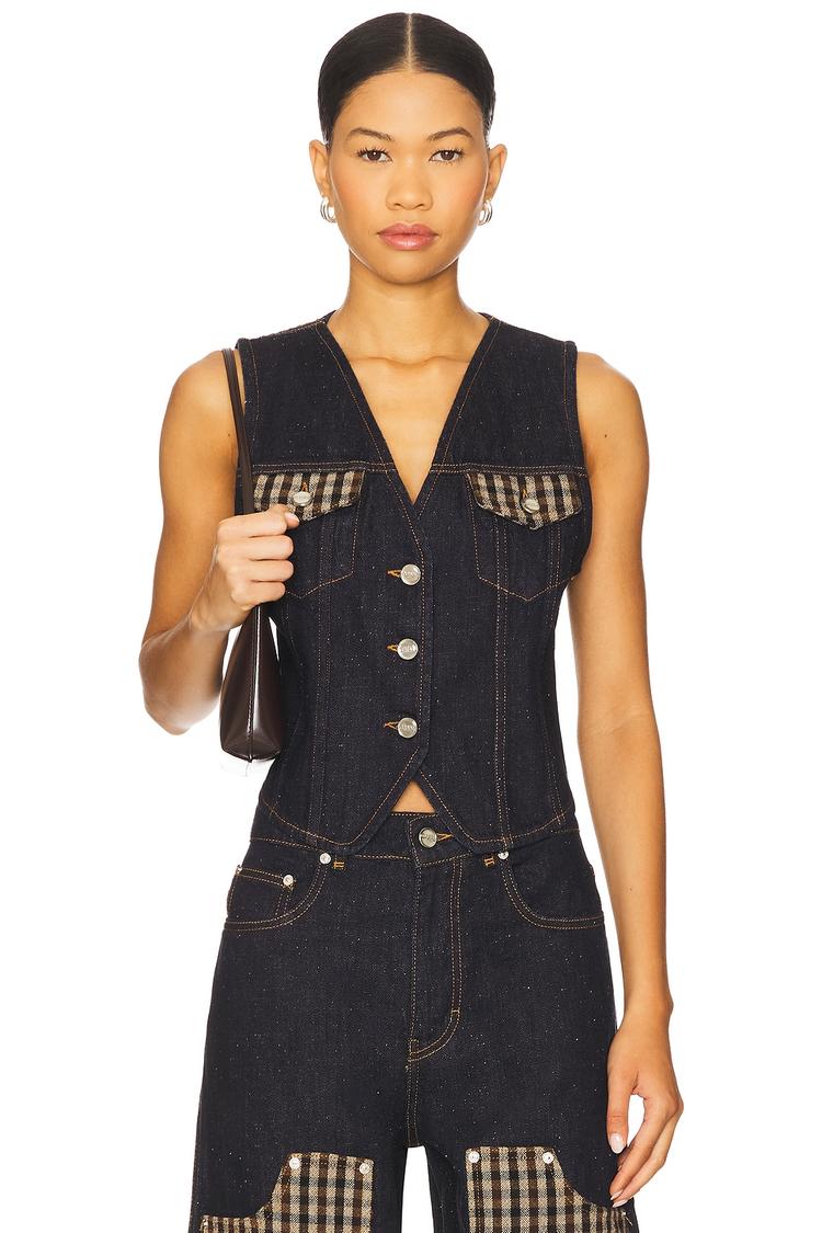 Embrace a sleek and modern vibe with this fitted dark denim vest from Ganni, crafted from 100% organic cotton for sustainable style. Featuring a clean silhouette with front button closure and practical breast flap pockets adorned with a chic beige and brown checkered pattern, this vest adds a subtle touch of texture and visual interest. Perfect for layering over casual outfits in spring, summer, or autumn, it offers a versatile streetwear edge with minimalist appeal. The midweight denim fabric ensures durability and comfort, making it a refined staple that elevates everyday looks effortlessly.