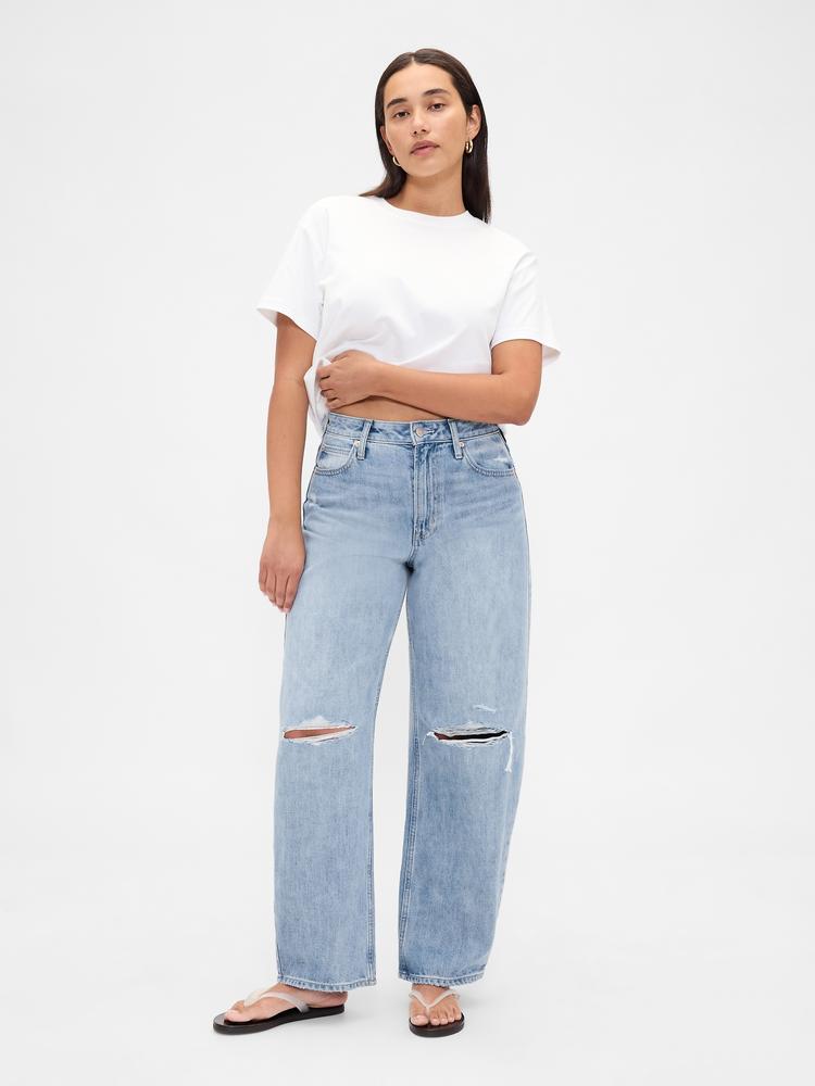 Step up your fashion game with the Curvy High Rise Barrel Jeans, a perfect blend of comfort and modern style. Designed with a relaxed fit and high waist, these light blue jeans offer a flattering silhouette that's ideal for the casual urban explorer. The lightly distressed detailing adds a trendy touch while the full-length legs provide effortless styling options. Pair them with your favorite tee and sandals for a laid-back day out or dress them up with a chic blouse for casual evenings. Make these your go-to staple for every season!