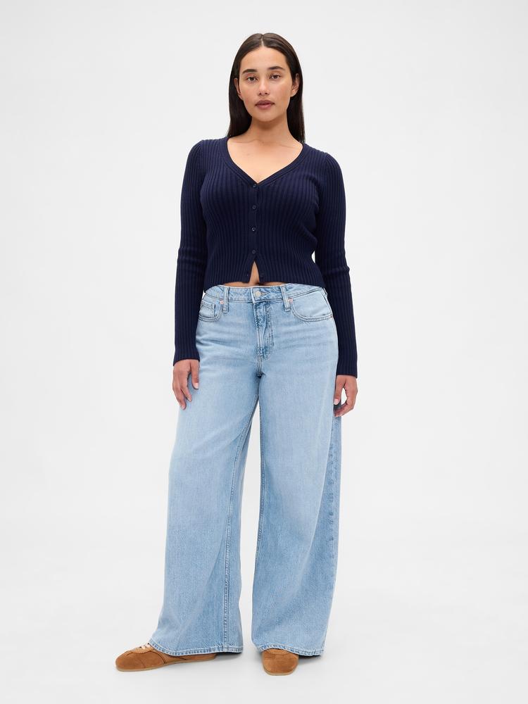 Experience effortless style and comfort with our Curvy Mid Rise UltraSoft Baggy Jeans. Crafted from lightweight denim, these jeans feature a relaxed wide-leg fit that flatters all body types while providing ample movement. The mid-rise waist ensures a comfortable and secure fit, making them perfect for casual outings or lounging at home. Pair them with a fitted top or your favorite knit for a chic yet laid-back look. Elevate your wardrobe with this versatile staple that never goes out of style.