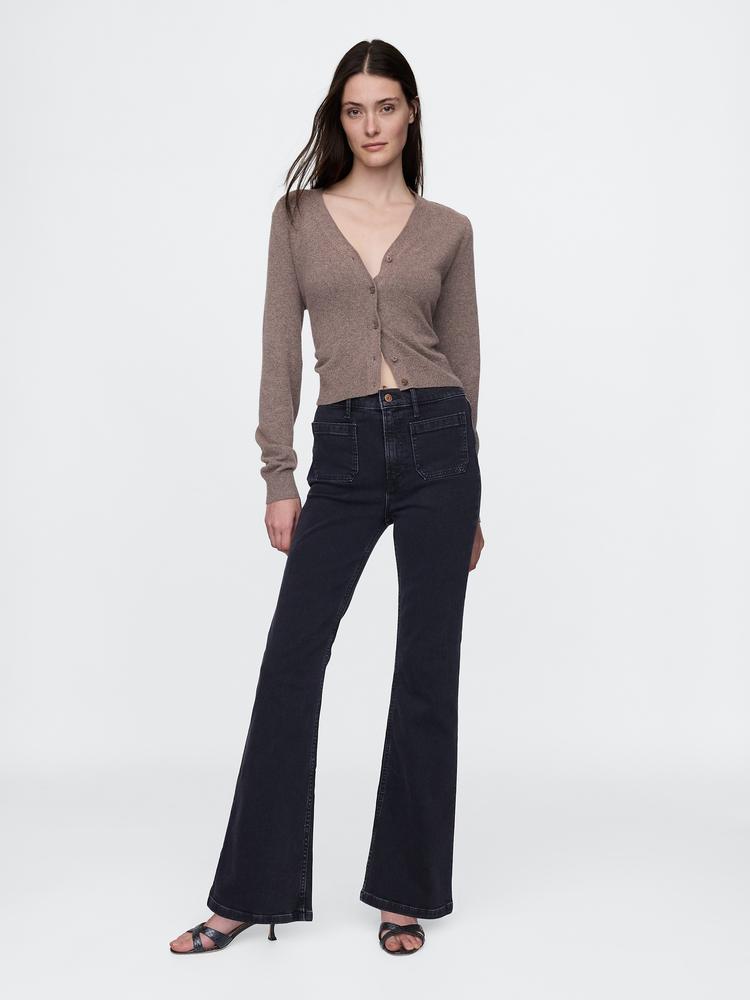 high rise flared jeans for retro style