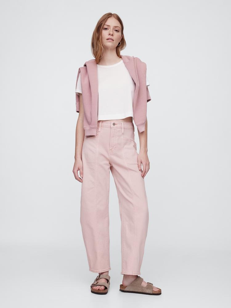 Elevate your everyday style with these High Rise Barrel Jeans that exude effortless sophistication. Crafted from soft denim in a trendy dusty pink, these jeans feature a relaxed fit that flatters while ensuring all-day comfort. Perfectly versatile, they can be styled with a crisp white tee for a casual daytime look or dressed up with a chic blouse for evening outings. Whether you're running errands or meeting friends for brunch, these jeans will redefine your wardrobe staples with their modern flair and timeless appeal.