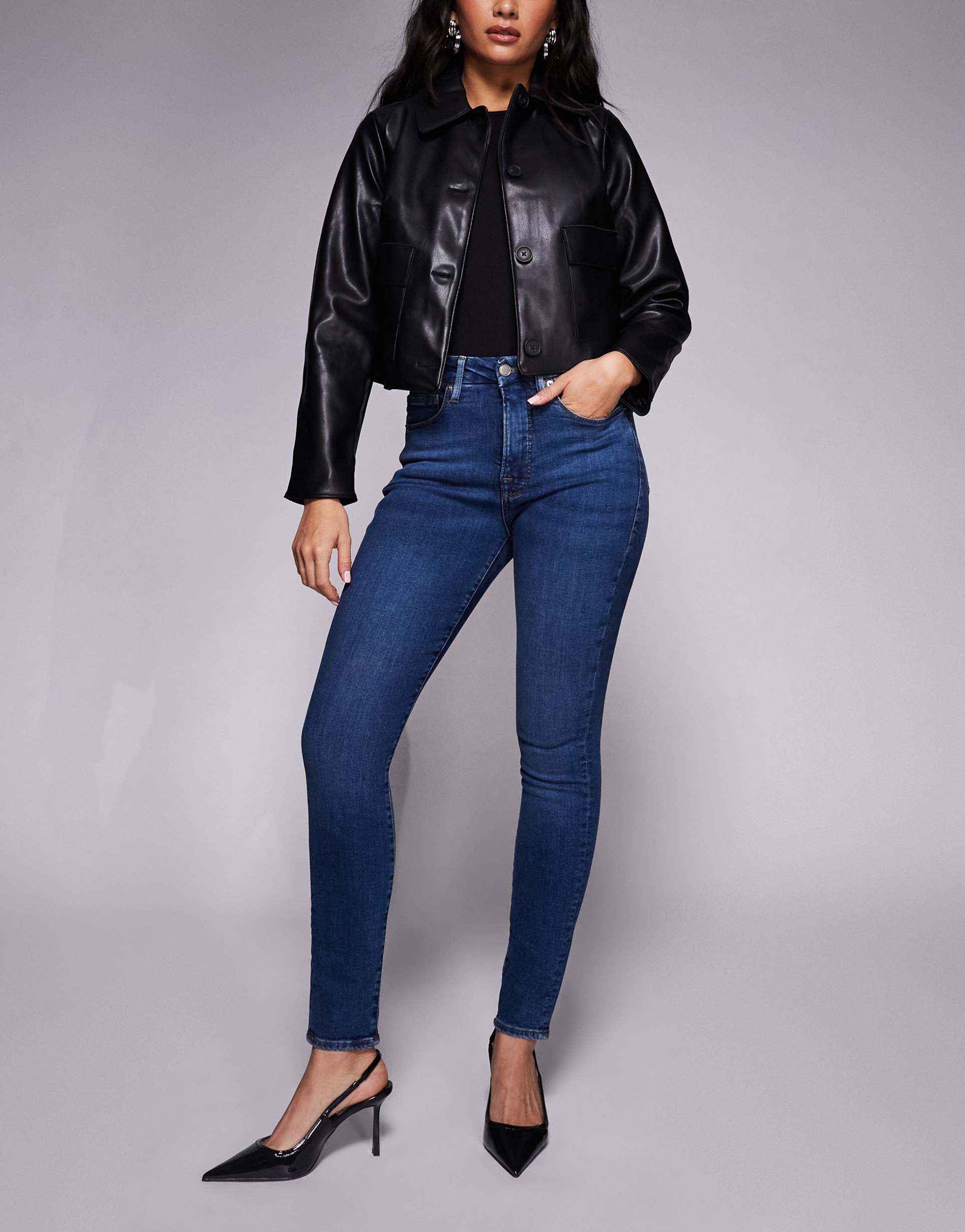 GOOD AMERICAN GOOD LEGS SKINNY JEANS IN MID BLUE