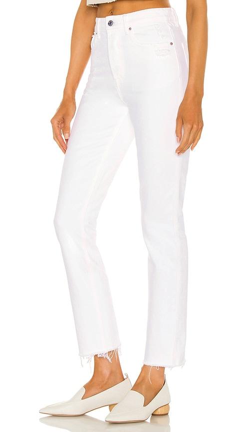 GRLFRND KAROLINA HIGH RISE STRAIGHT CROP JEANS IN WHITE.