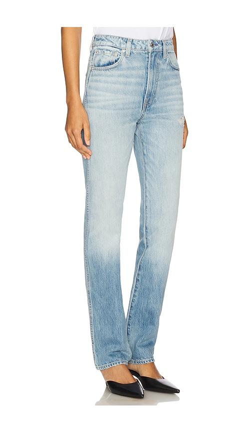 GRLFRND SARA SUPER HIGH RISE STRAIGHT JEANS IN BLUE.