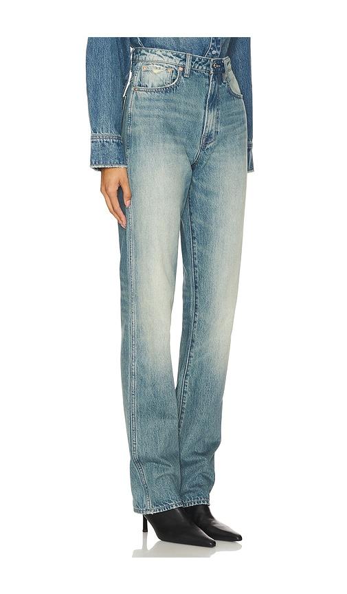 GRLFRND SARA SUPER HIGH-RISE STRAIGHT JEANS IN DENIM-MEDIUM.