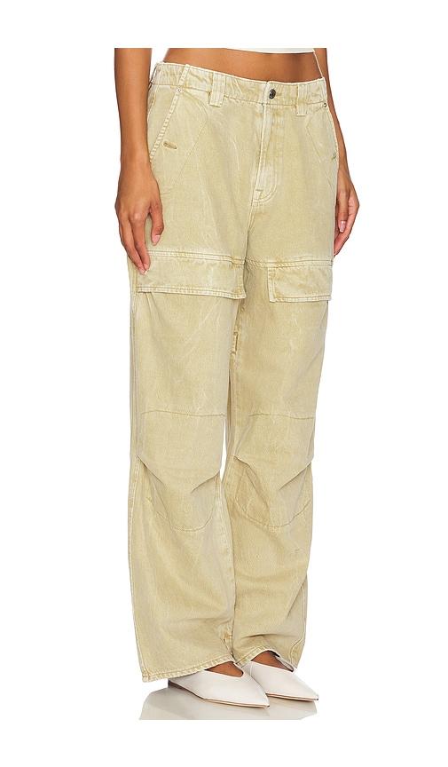 GRLFRND STEPH LOW RISE CARGO JEANS IN BEIGE.