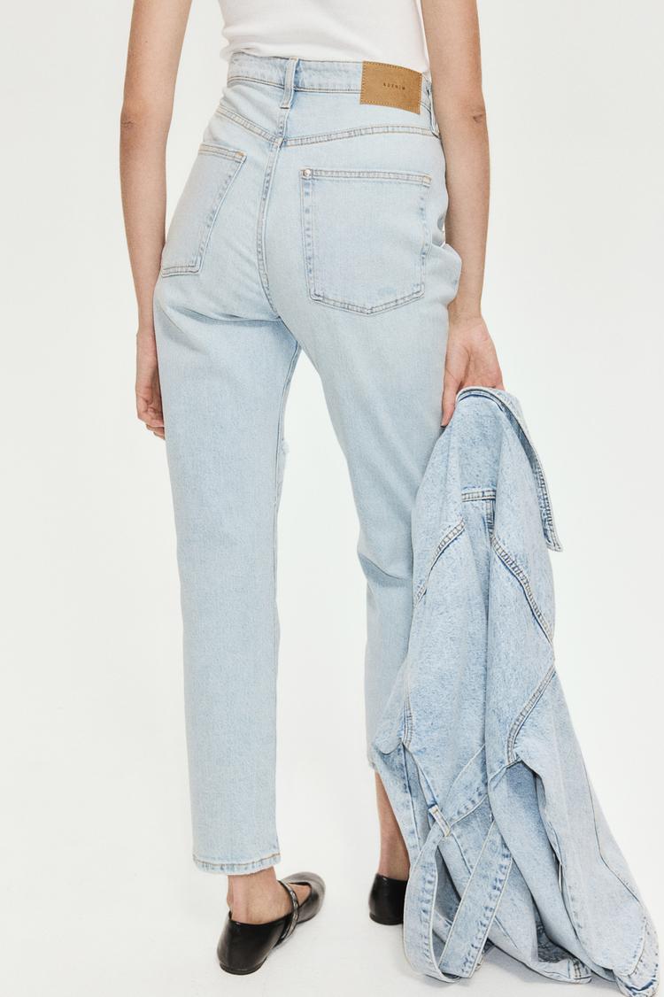 Meet your go-to denim for everyday storytelling. These Ultra High Rise Mom Jeans in a light denim wash bring a vintage, relaxed silhouette into a contemporary routine. Crafted in cotton denim with gentle stretch, they sit at an extra-high waist for a flattering, smoothing fit and feature a classic zip fly with button, five-pocket styling, and a tapered ankle-length leg. The jeans are made from recycled cotton using CirculatorTM design tools and finished with lower-impact washing. Wear them with a tee and sneakers for casual days, or pair with a blazer for casual chic weekends—durable, comfortable, and endlessly versatile.