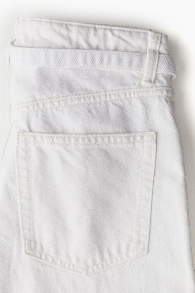 Redefine your everyday wardrobe with these Wide-Leg Belted Jeans. Crafted in crisp white denim, they sit high at the waist for a sculpting silhouette and open into a generous, fluid flare from thigh to hem. A slim belt with metal D‑rings adds a touch of utilitarian polish, while a classic zip fly and button keep the front clean. With the timeless five-pocket design, these jeans team effortlessly with camis, knitwear, or a tailored blazer for both casual days and dressier evenings. Wear them folded at the cuffs for a modern finish, and let the clean lines do the talking.