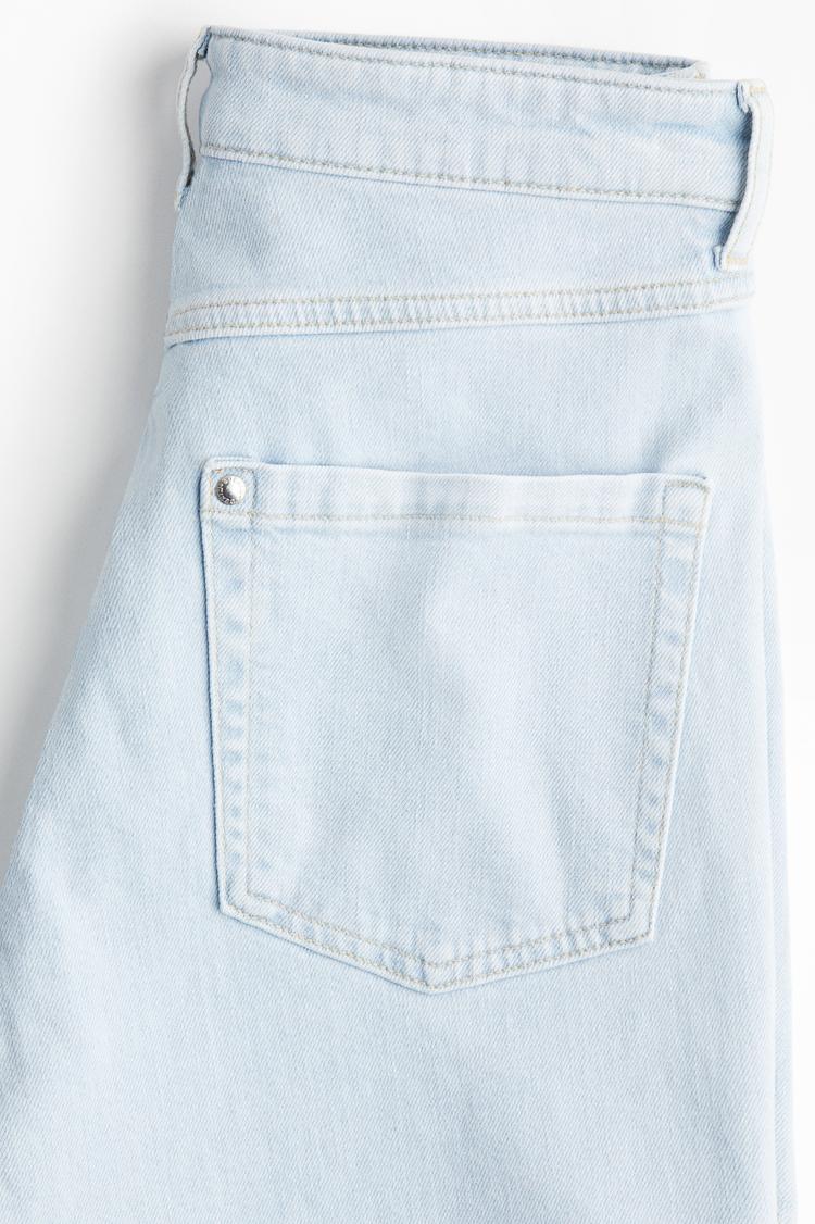 Channel a timeless, casual-chic vibe with these Flared Ultra High Jeans. In a light-blue rigid cotton denim, they feel firm at first and soften with wear. A high, extra-strong waistband and zip fly with button deliver a clean, smooth silhouette through the waist and thigh, then they flare dramatically from the knee to the hem. Patch front and back pockets add practical detail, while a full-length leg falls neatly over your shoes with little stacking. Pair with a tucked tee and sandals for everyday ease, or a blazer for office-ready polish.