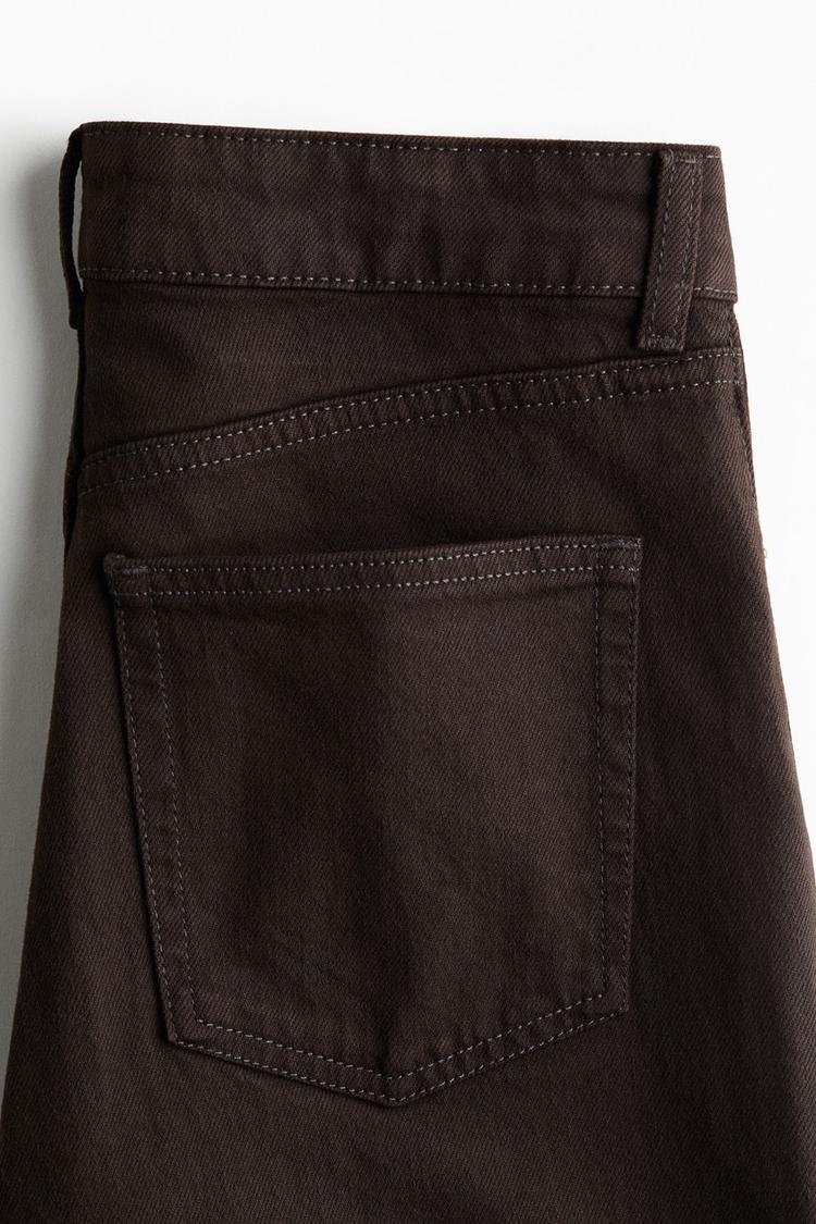 Discover the timeless appeal of the Harper High Rise Wide Leg Jeans in a rich dark brown shade. Crafted from a stretchable cotton blend, these jeans offer a comfortable regular fit with a flattering high waist and a clean, flat-front waistband. The wide-leg silhouette and full-length hem add a modern yet classic touch, perfect for casual and everyday wear. Featuring practical back pockets and a smooth, solid finish, these jeans effortlessly combine style and function. Ideal for versatile streetwear looks, they bring understated sophistication to your wardrobe essentials.