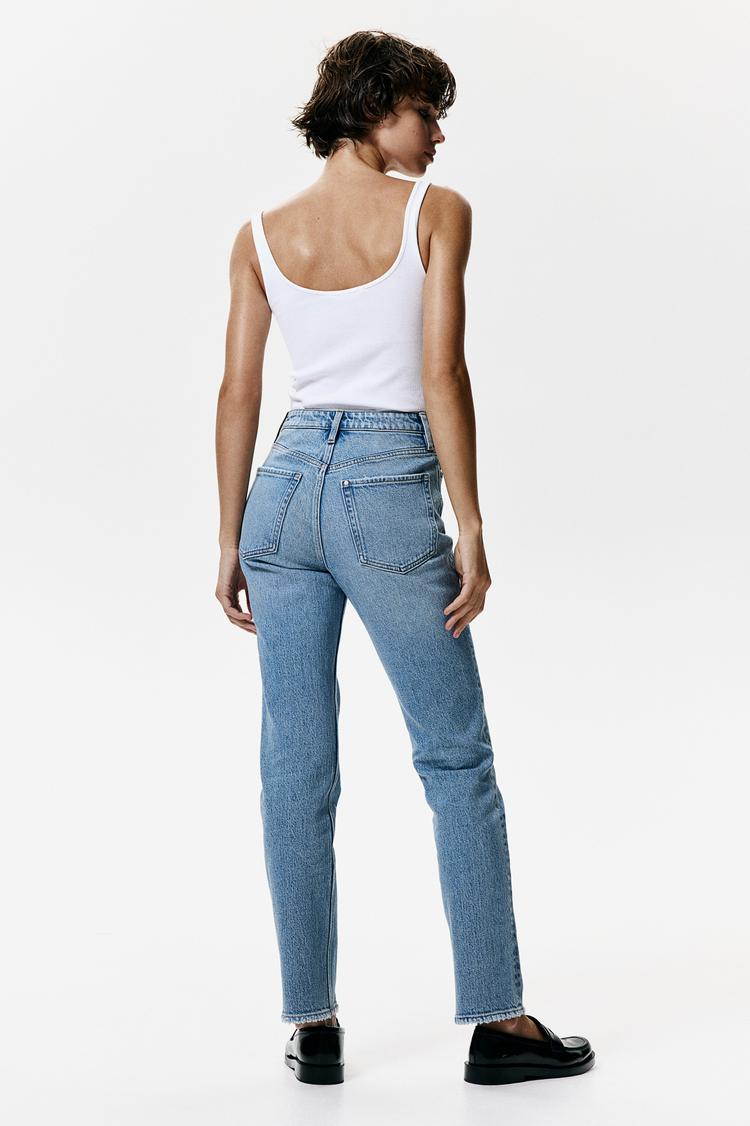 5-pocket, ankle-length jeans in cotton denim with gentle stretch for good comfort. Regular fit from waist to thigh and narrow, straight cut from knee to hem. High waist and zip fly with button. A versatile, everyday design.