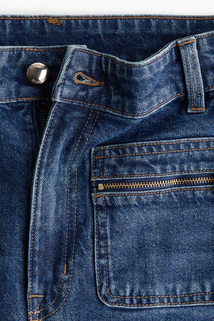 dark blue jeans with patch pockets