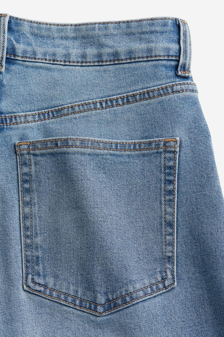 5-pocket jeans in cotton denim with gentle stretch for freedom of movement while retaining shape firmly over legs. Regular fit from waist to hip and a straight, wide cut from thigh to hem. High waist, zip fly with button, and raw-cut hems. Wide, ankle-length legs.