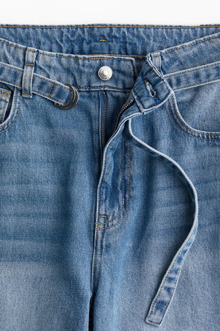 Effortless denim redefined for the modern wardrobe. This wide-leg, high-rise jean from H&M pairs a slim waist with a fluid leg for movement that flatters every stride. Crafted in cotton denim with a classic mid-wash, it features a narrow belt with metal D-rings and a zip fly with button for a clean, polished line. The five-pocket silhouette keeps it practical, while the belted waistband adds a refined detail you can dress up with a blazer or keep casual with a tee. From office days to weekend errands, this versatile staple moves with you.