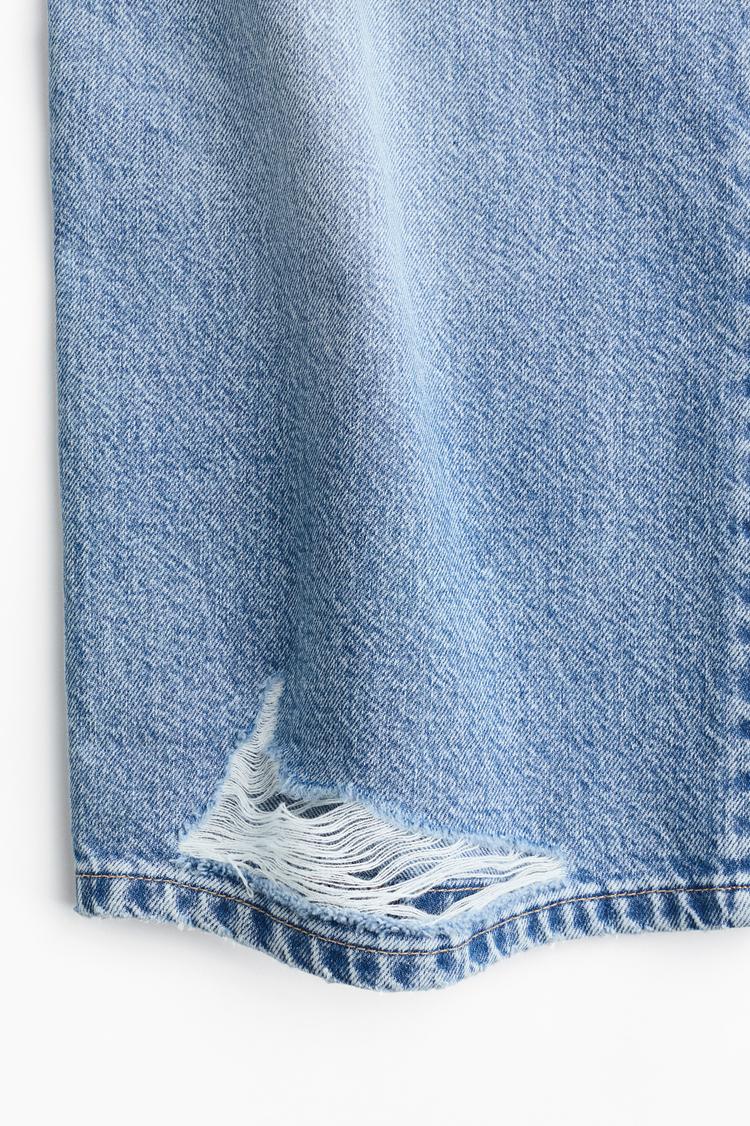 Capture the essence of laid-back 90s style with these wide-leg regular fit jeans in a classic light blue denim. Crafted from breathable cotton denim, they feature a flat-front waistband with button and zipper closure for a secure fit. The full-length silhouette flows effortlessly to the floor, finished with a raw-edge, frayed hem and subtle distressed detailing that adds vintage charm. Functional rear pockets enhance everyday practicality. Perfect for casual outings or streetwear looks, these jeans combine timeless comfort with a trendy relaxed vibe that pairs seamlessly with tees and sneakers.