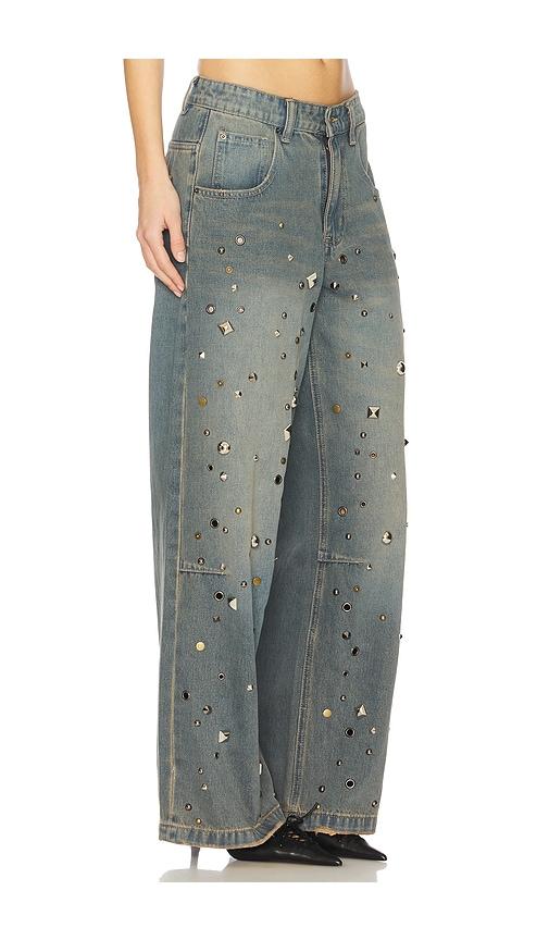 JADED LONDON STUDDED COLOSSUS WIDE LEG JEANS IN BLUE.