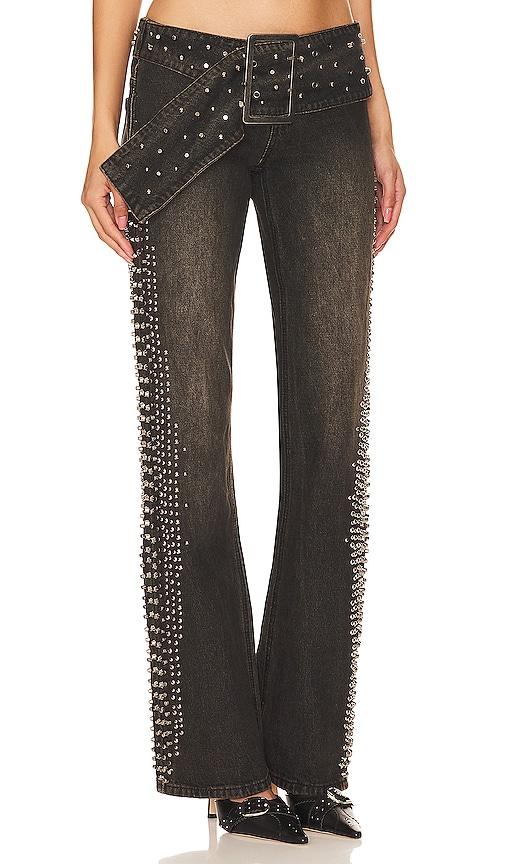 JADED LONDON STUDDED LOW RISE JEANS IN DENIM-DARK.