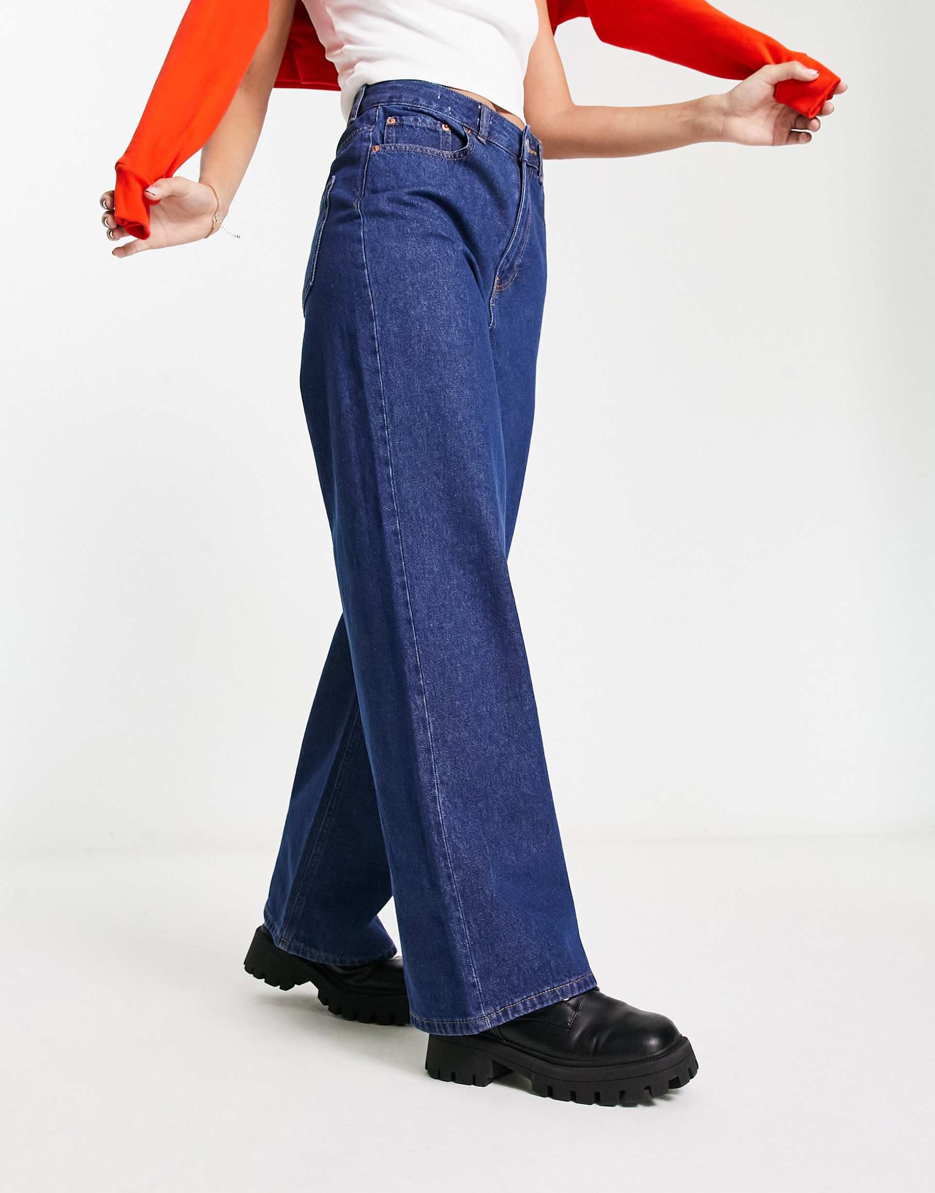 JJXX TOKYO HIGH WAISTED WIDE LEG JEANS IN DARK BLUE