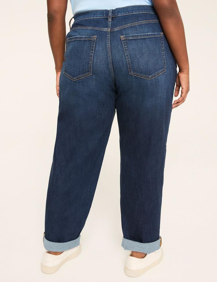 Embrace laid-back confidence with these Plus Size Boyfriend Fit Capri Jeans from Lane Bryant. Crafted from a premium comfort stretch denim blend, they offer a relaxed yet flattering silhouette that tapers elegantly at the cuff. Featuring a mid-rise stretch waistband with Magic Waistband technology, these jeans ensure no-gap, all-day comfort that moves with you. The classic dark denim hue and fixed cuff design make them perfect for casual outings, weekend errands, or relaxed brunch dates. Complete with functional five-pocket styling and belt loops, these cropped boyfriend jeans blend vintage-inspired charm with modern comfort and fit, making them a versatile staple for your casual wardrobe.