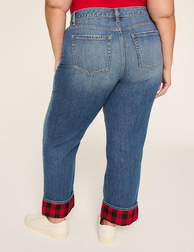 BOYFRIEND FIT PLAID-CUFF JEAN