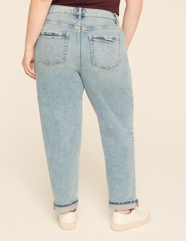 BOYFRIEND FIT PLAID-DETAIL JEAN