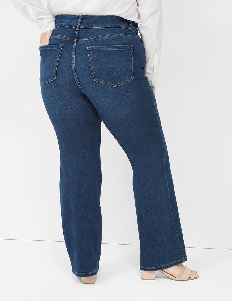 Elevate your everyday denim with Lane Bryant's Tighter Tummy Fit High-Rise Boot Jean in a deep dark wash. Designed for curves, this bootcut silhouette flatters with a slimming T3 reinforced high-rise panel and a flexible Flex Magic Waistband that moves with you. The fabric blends classic cotton denim with a hint of Lyocell and spandex for a smooth, comfortable stretch that holds its shape through the day. Wear it from desk to dinner with a crisp blouse or a relaxed tee and kimono for a chic, boho vibe. A timeless staple that pairs with everything.