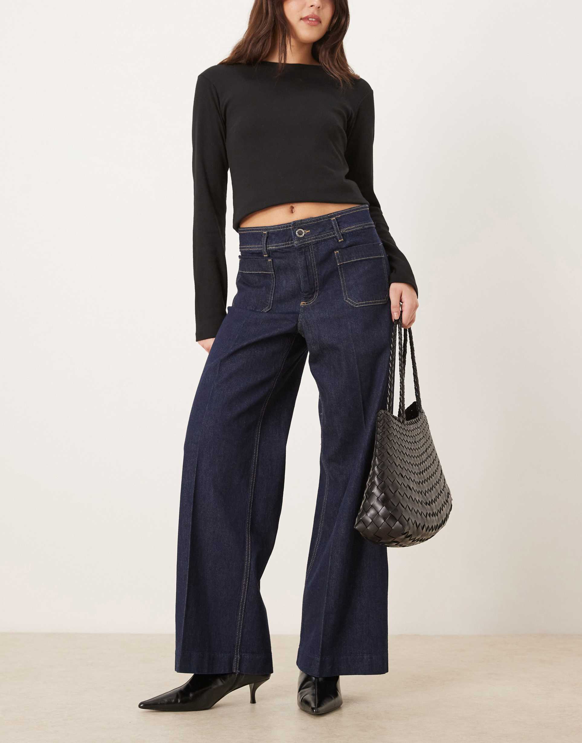 MANGO JESSIE COTTON MIX POCKET DETAIL WIDE LEG JEAN IN INDIGO