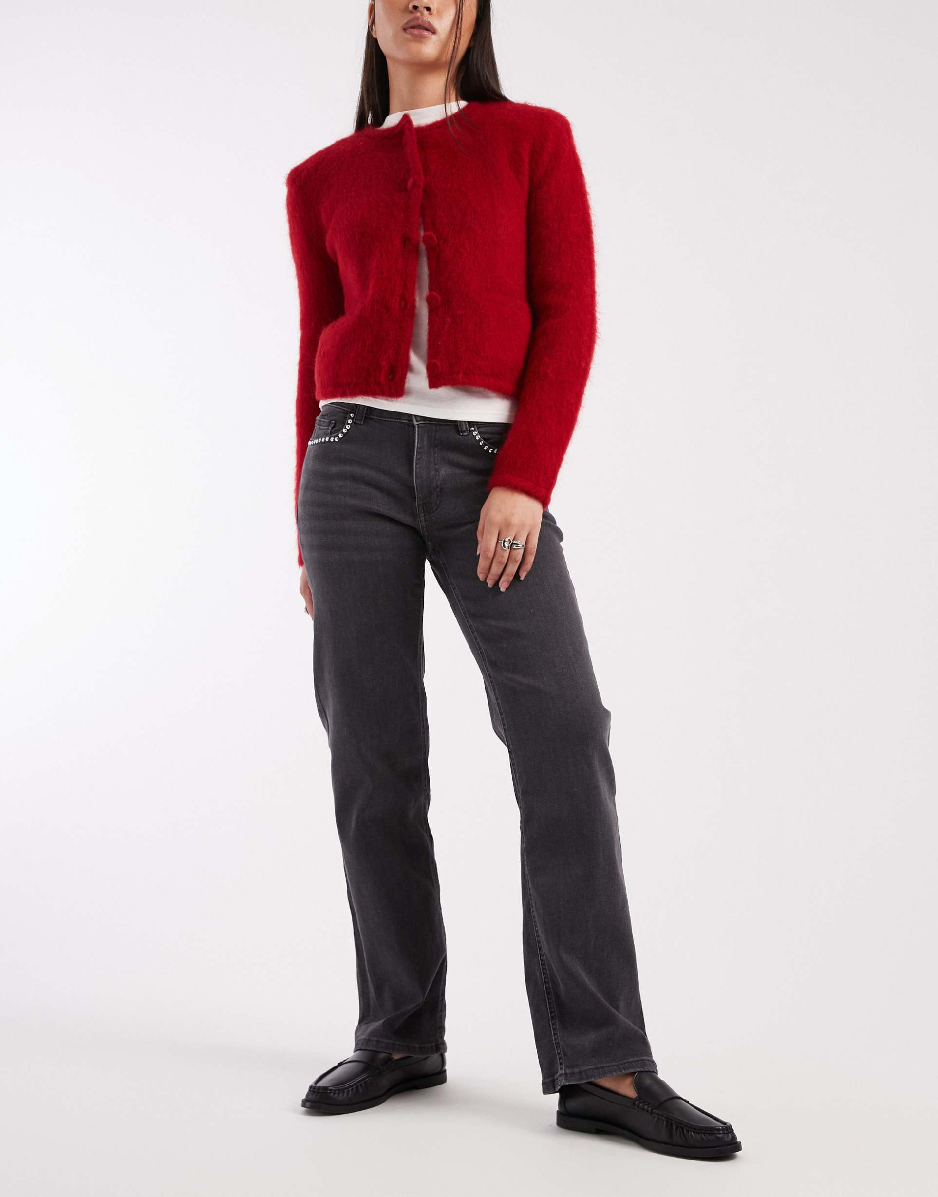 MANGO TEEN STRAIGHT LEG JEANS WITH STUD POCKET DETAIL IN WASHED BLACK