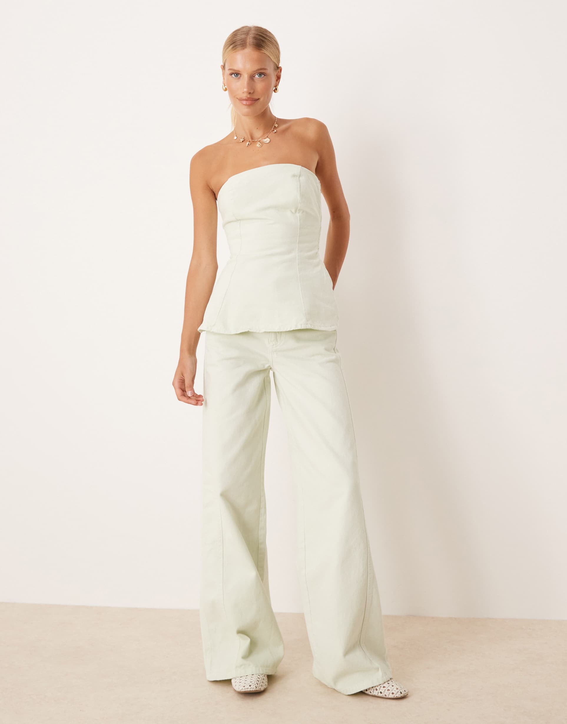 MANGO WIDE LEG MID-WAIST JEANS IN PASTEL GREEN - PART OF A SET