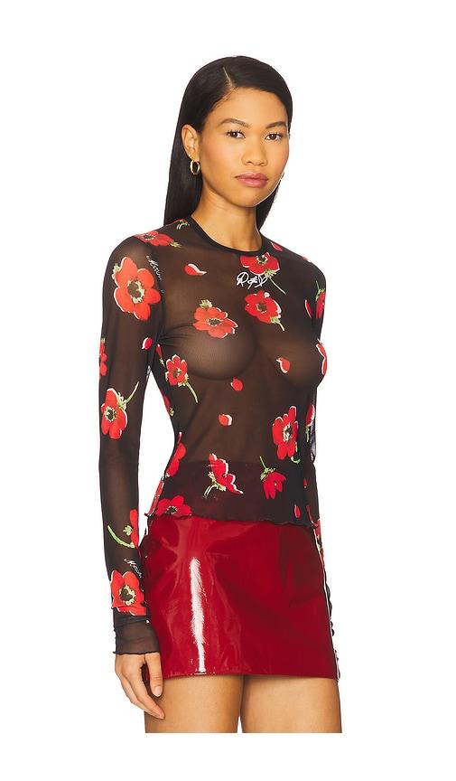 MOSCHINO JEANS SHEER FLORAL LONG SLEEVE IN BLACK.