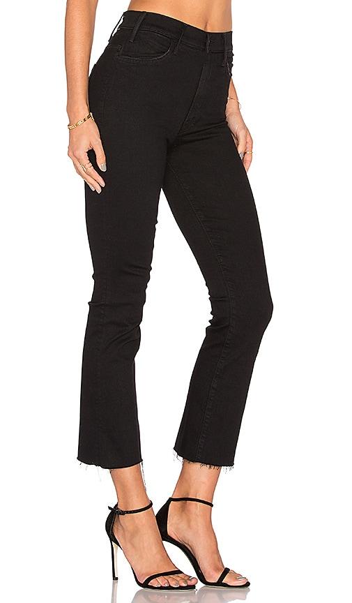 MOTHER THE HUSTLER ANKLE FRAY JEANS IN BLACK.