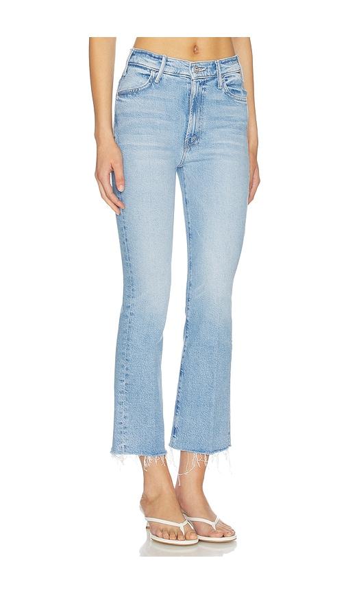 MOTHER THE HUSTLER ANKLE FRAY JEANS IN BLUE.
