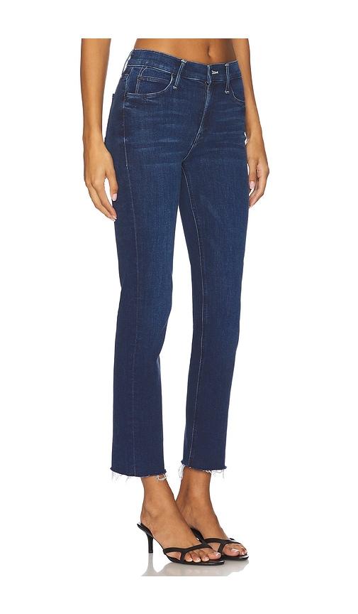 MOTHER THE MID RISE DAZZLER ANKLE FRAY JEANS IN BLUE.