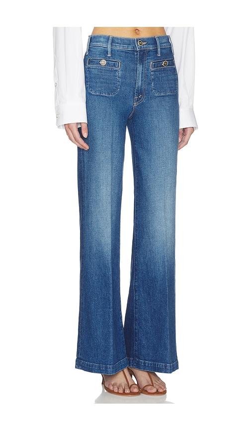 MOTHER THE STASHED HUSTLER ROLLER SNEAK JEANS IN BLUE.