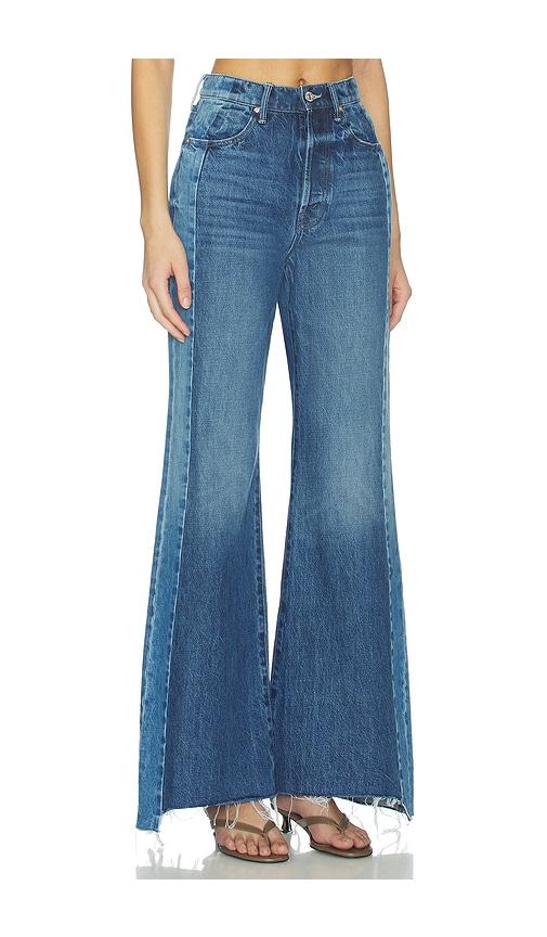 MOTHER THE TUX SIDESTEPPER SNEAK FRAY JEANS IN BLUE.