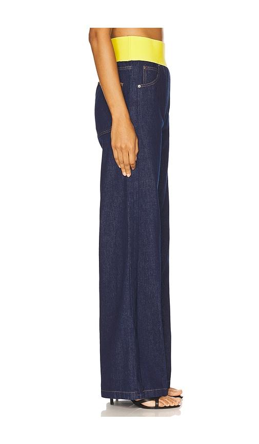 MSGM WAISTBAND WIDE LEG JEAN IN BLUE.