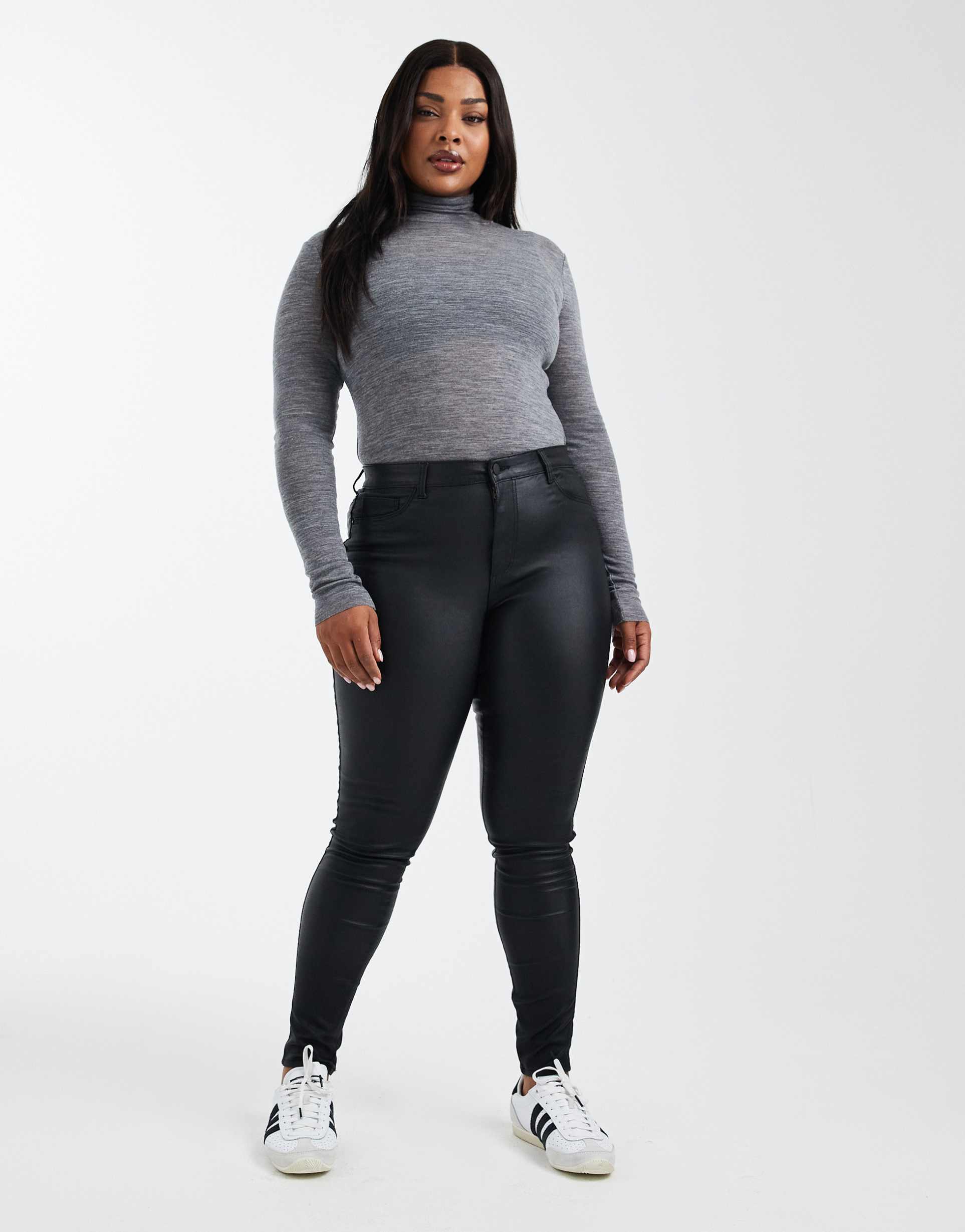 ONLY CURVE COATED SKINNY JEANS IN BLACK