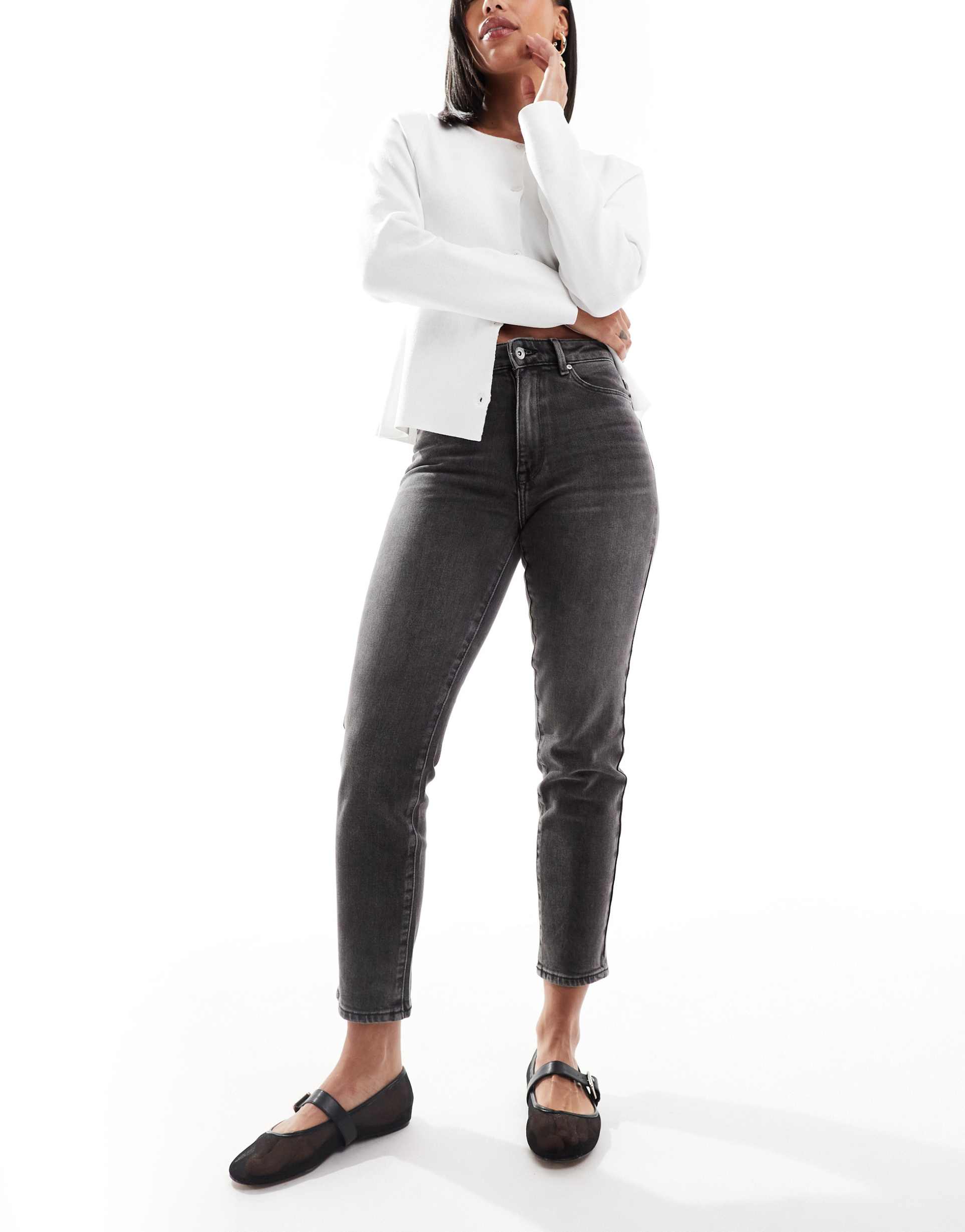 ONLY EMILY HIGH WAISTED STRAIGHT LEG JEANS IN WASHED GRAY