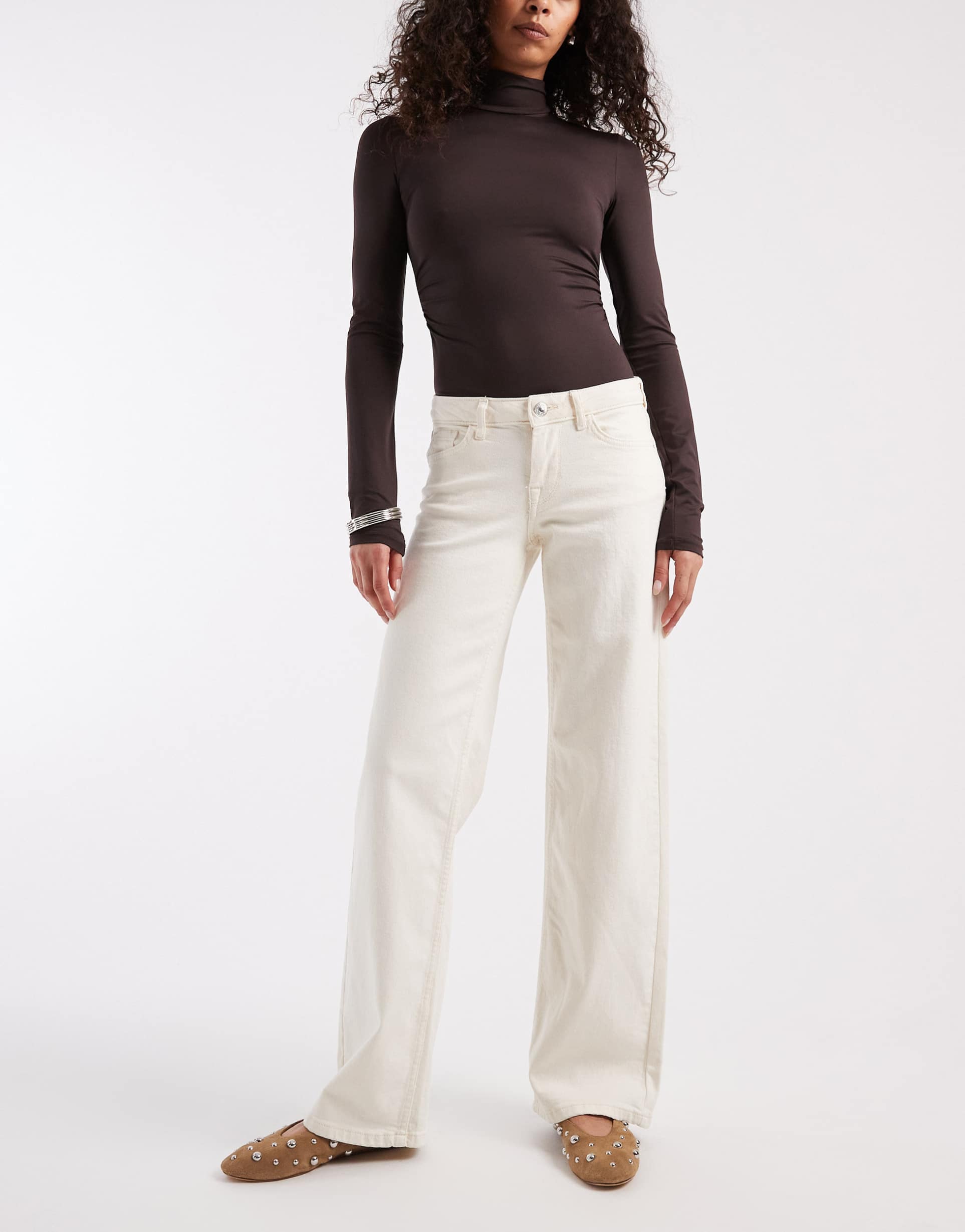 ONLY JUDY LOW RISE WIDE LEG JEANS IN ECRU