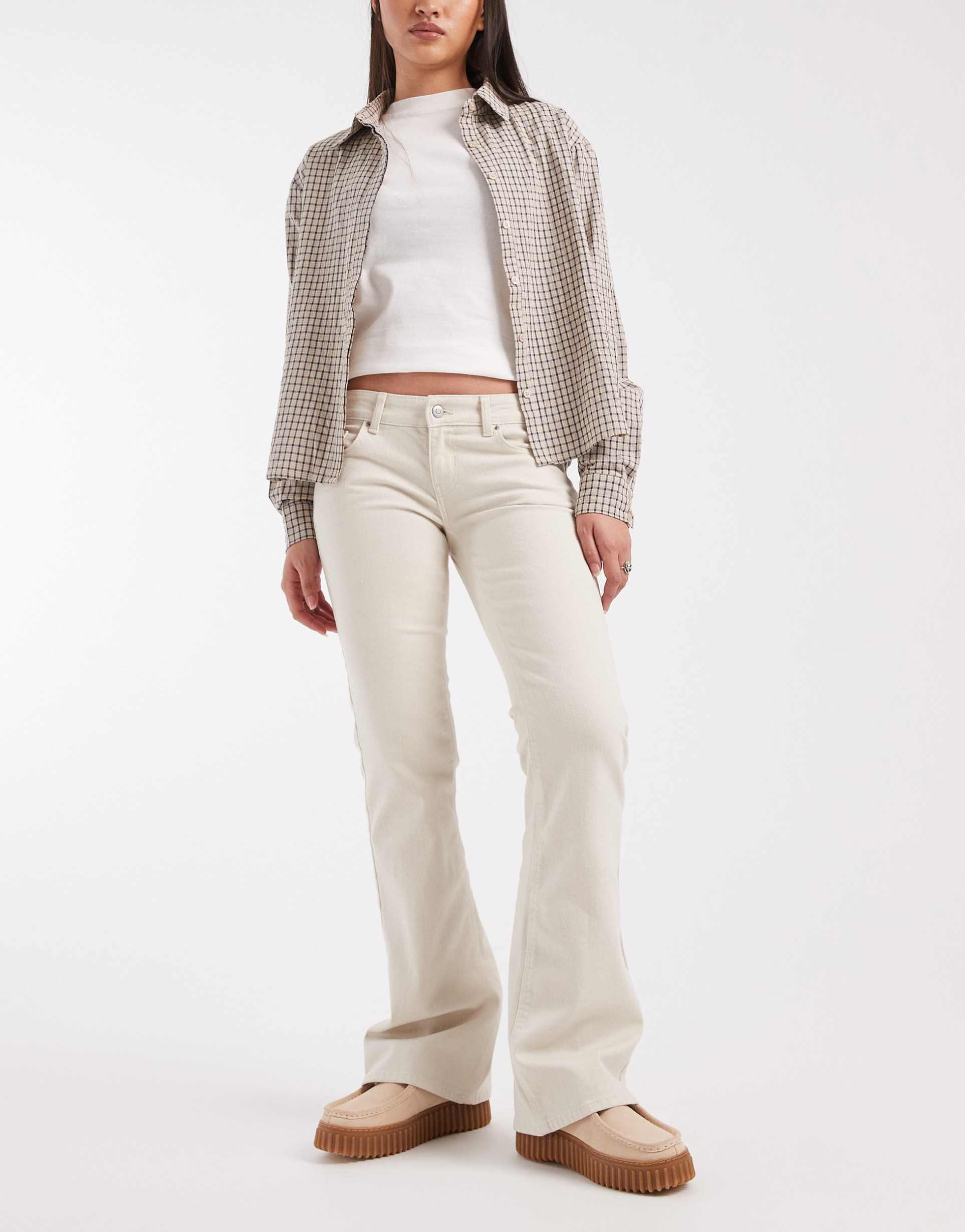 ONLY LOLA SUPER LOW WAIST FLARED JEANS IN ECRU