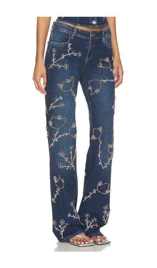 OW COLLECTION NOVA EMBELLISHED DENIM JEAN IN BLUE.