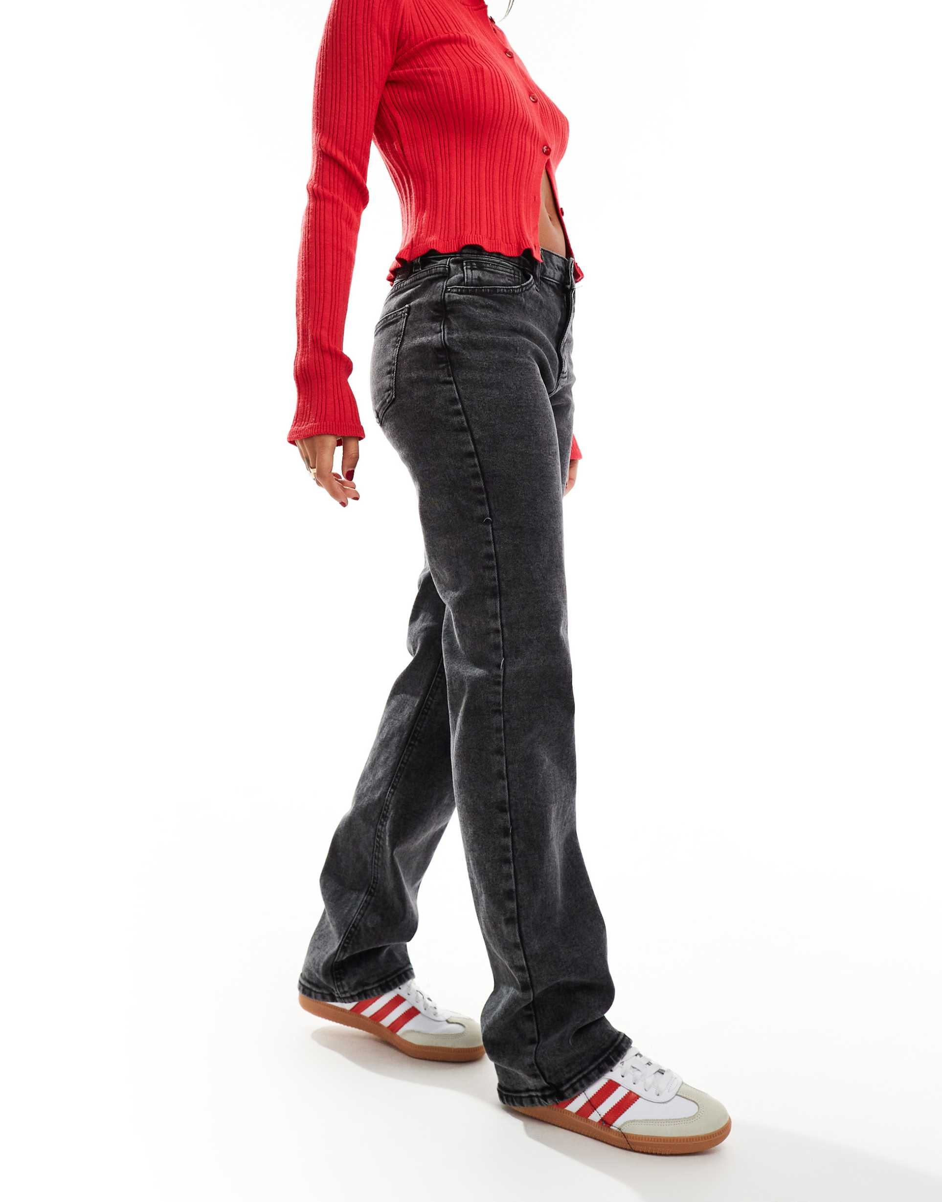PIECES KELLY MID WAISTED STRAIGHT LEG JEANS IN DARK GRAY WASH