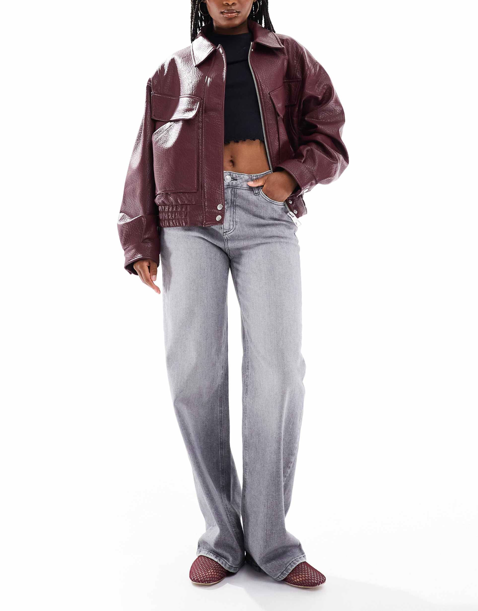 PIECES SILKE MID RISE WIDE LEG JEANS IN MEDIUM GRAY