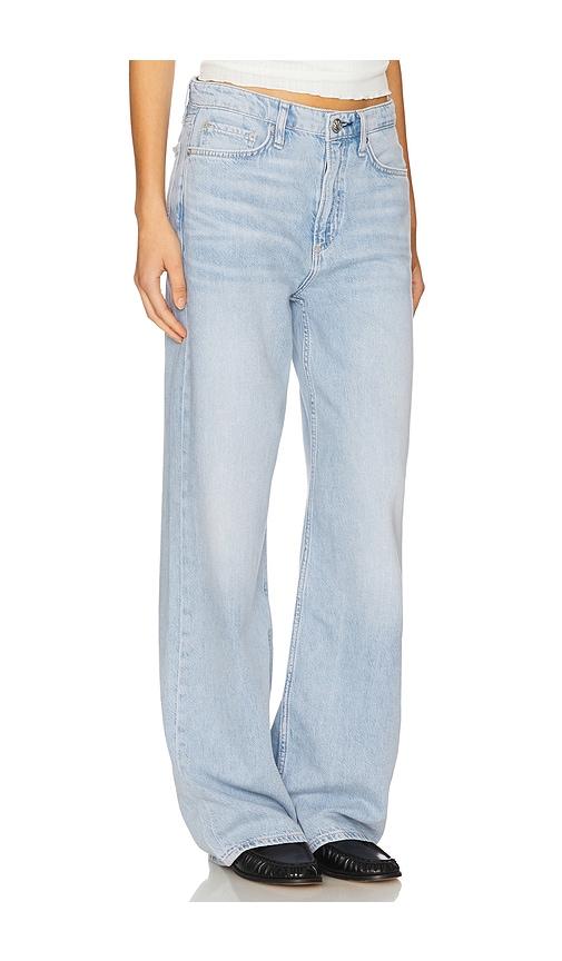 RAG & BONE FEATHERWEIGHT LOGAN MID RISE WIDE LEG JEANS IN BLUE.