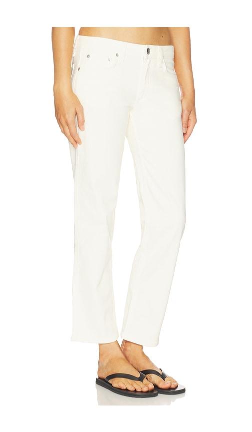 RAG & BONE HARLOW LOW RISE ANKLE STRAIGHT JEANS IN CREAM.