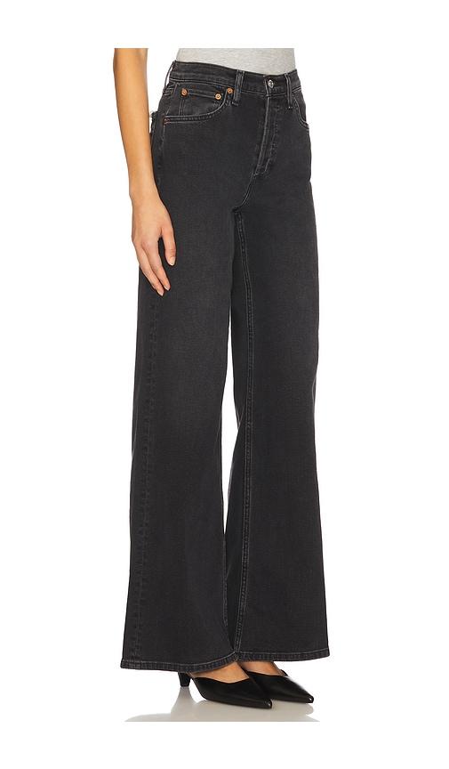 RE/DONE ORIGINALS HIGH RISE WIDE LEG JEANS IN BLACK.