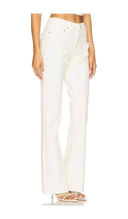 SEROYA DAHLIA FRAYED BOOTCUT JEANS IN CREAM.