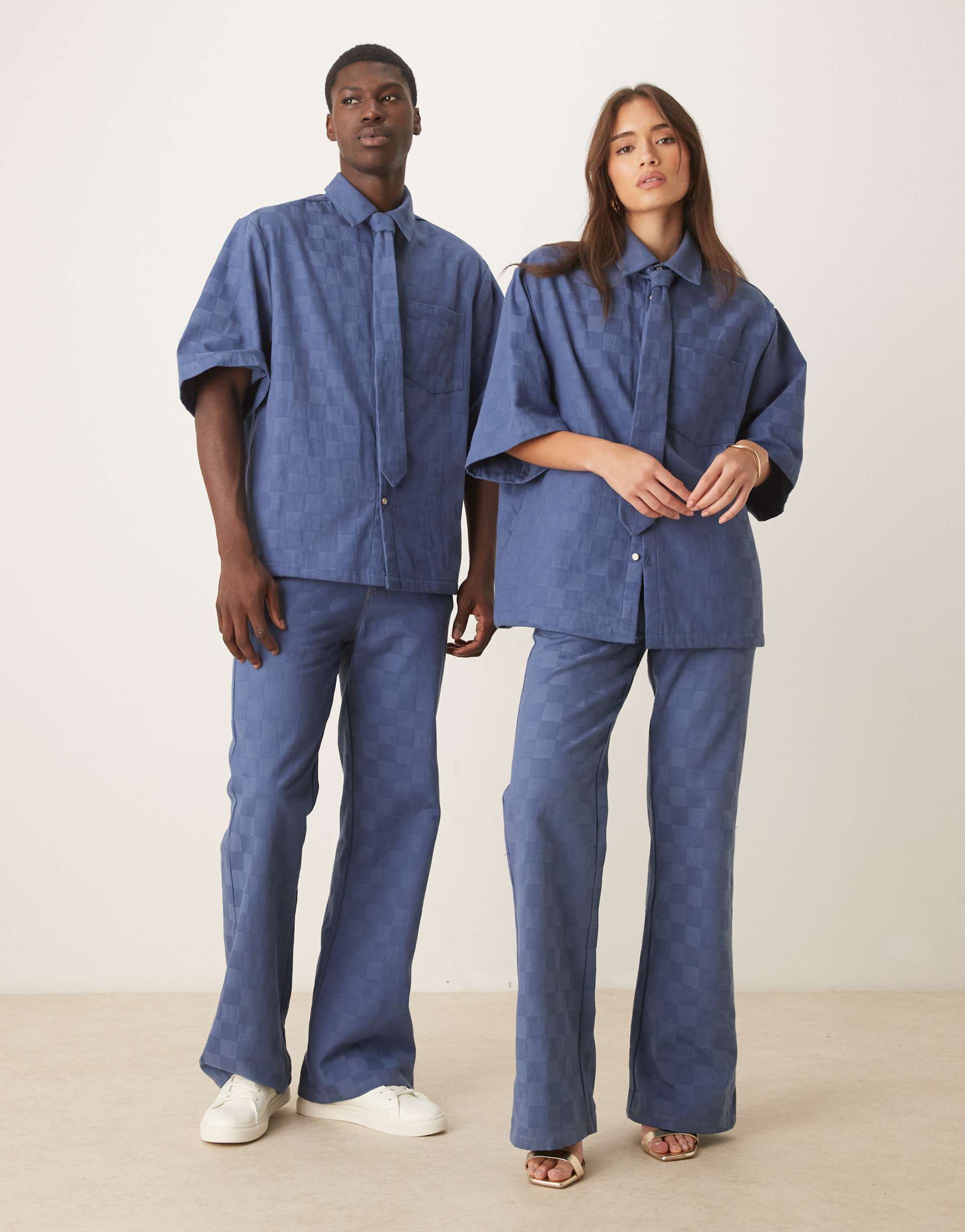SISTER JANE UNISEX CHECKERBOARD DENIM JEANS IN BLUE - PART OF A SET